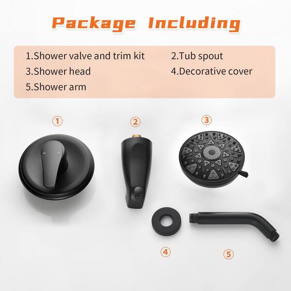 6-Spray Patterns 5 in. Wall Mount Fixed Shower Head in Matte Black