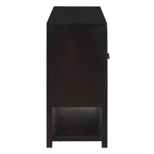 60 in. Espresso Rectangle Wood Console Table with Mirrored Doors and Open Shelf