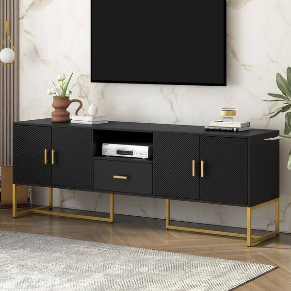 68.9 in. Black TV Stand Fits TVs Up to 70 in. with Drawer and Metal Legs