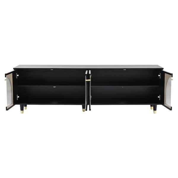 69.6 in. Black TV Stand Fits TVs up to 78 in. with Arch Fluted Glass Doors and Adjustable Shelves