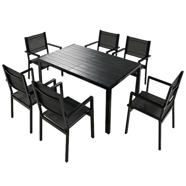 7-Piece Black Metal Patio Outdoor Dining Set without Cushion