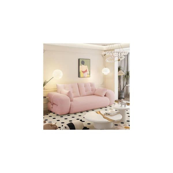 78.7 in. W Pink Teddy Fabric Full Size Multi-Functional Foldable Sofa Bed, Compressed Human Dog Bed, No Assembly
