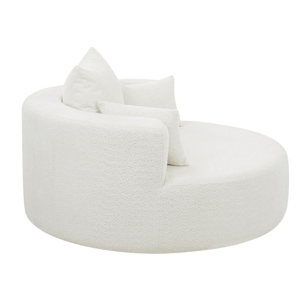 Beige Chenille Swivel Chair Accent Barrel Chair with 3 Removable Pillows