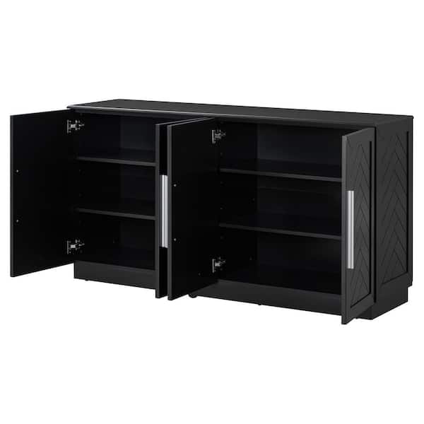 Black MDF 60.1 in. W Sideboard Buffet Cabinet with 4 Doors, Adjustable Shelves and Silver Handles