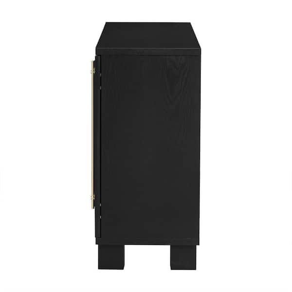 Black MDF 60 in. W Sideboard Buffet Cabinet with Storage, Adjustable Shelves and Gold Handles