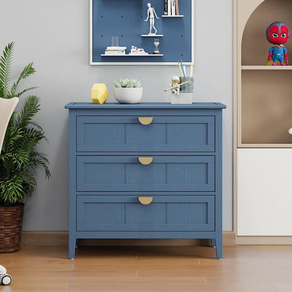 Blue 3 Drawers 31.54 in. W Nightstand