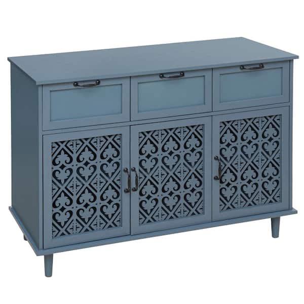 Blue Particle Board 47.24 in. W Sideboard with 3 Drawers and 3 Doors