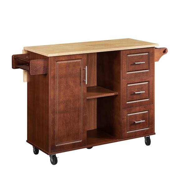 Brown Wood 53.8 in. Kitchen Island with Drop Leaf, 3-Drawers and Shelves