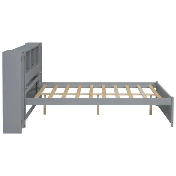 Gray Wood Frame Full Size Platform Bed with Storage Headboard and Lockers