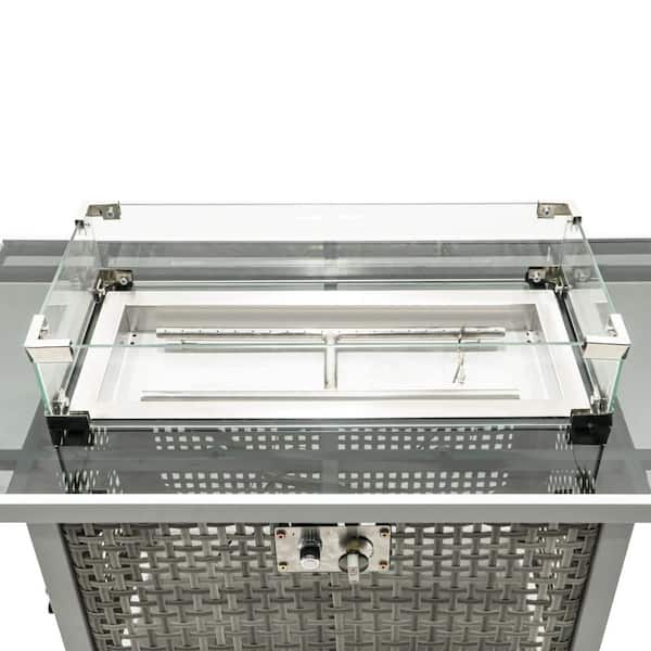 Grey 43 in. 60000 BTU Rectangular Wicker Outdoor Propane Gas Fire Pit Table with Glass Wind Guard
