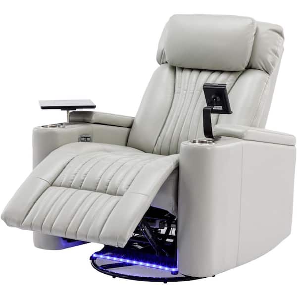 Grey PU Leather 270° Swivel Recliner with LED Light Strip and Cell Phone Holder