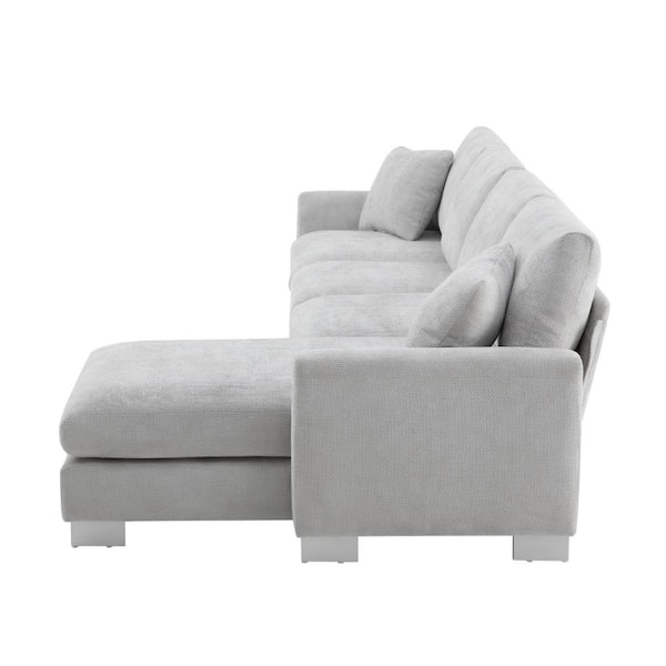 Modern 119 in. L-Shaped Chenille Sectional Sofa in Light Gray with 2 Free Pillows and Chaise