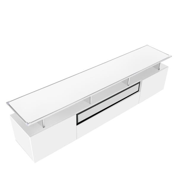 Modern White TV Stand Fits TVs up to 80 in. with Drawer, Cabinets and LED Lights
