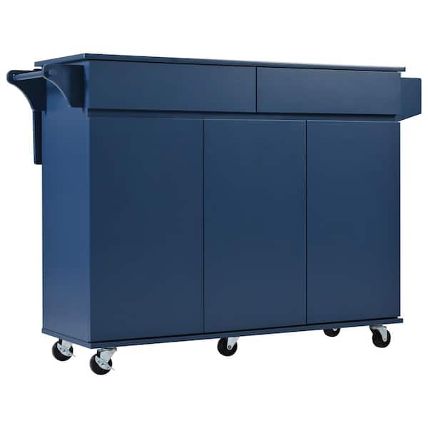 Navy Blue Wood 53.2 in. Kitchen Island with Drop Leaf, Spice Rack, Towel Rack, 2 Drawers and Adjustable shelves