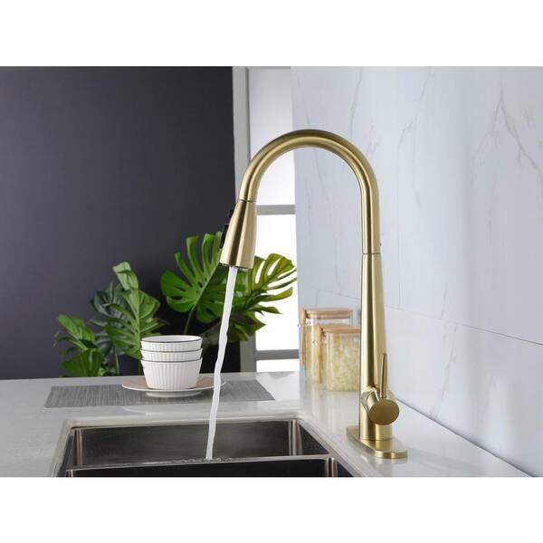 Single Handle Pull Down Sprayer Kitchen Faucet in Gold