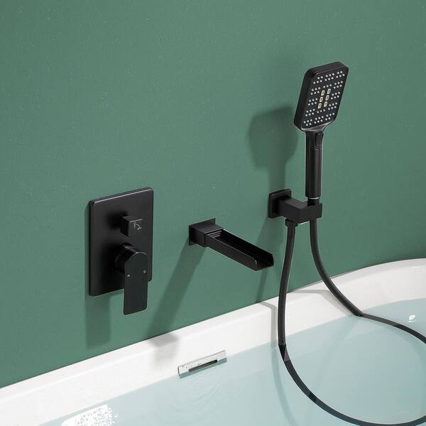 Single-Handle Wall Mount Roman Tub Faucet with Hand Shower in Matte Black