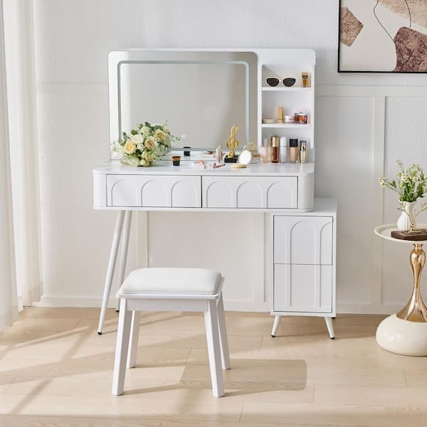 White 40 in. W Makeup Vanity with 4 Drawers and Mirror, Dresser Table Set with Stool