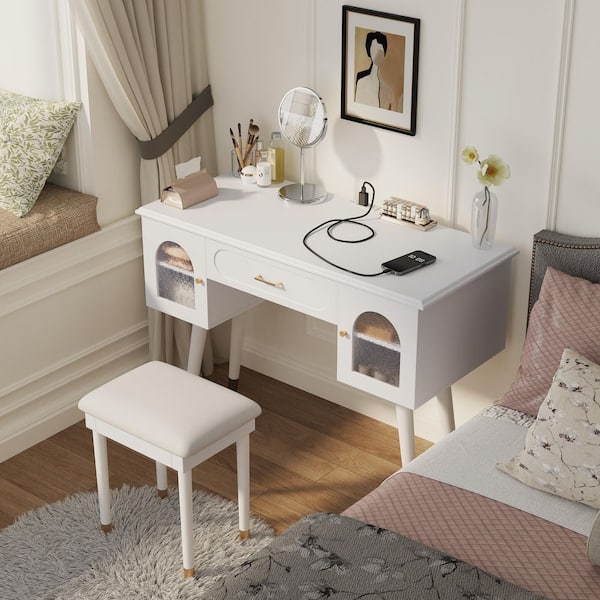 White 40 in. W Makeup Vanity with One Drawer, Dresser Set with Chair(Without Mirror)