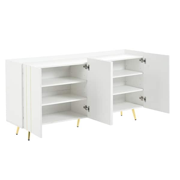 White MDF Top 62.9 in. W Sideboard Cabinet with 4 Adjustable Shelves and 5 Metal Legs