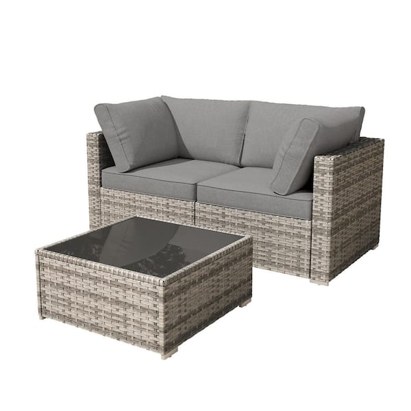 Nestle 3 Pieces Wicker Patio Conversation Seating Sofa Set with Dark Grey Cushions and Coffee Table