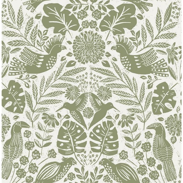 Nestle Bird Block Print Green Nonpasted Non Woven Wallpaper