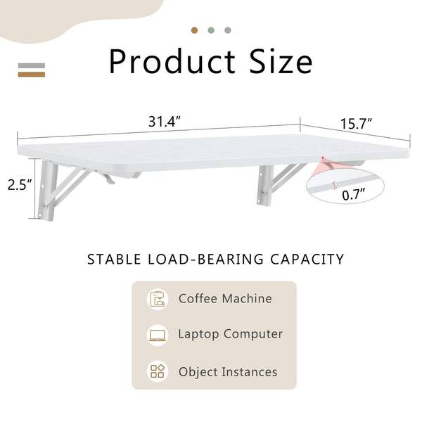 New 31.4 in. W x 15.7 in. D White Wall Mounted Folding Decorative Wall Shelf and Table with Cold-Rolled Steel Brackets