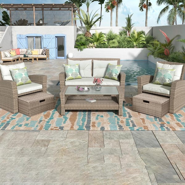 New 4-Piece Wicker Outdoor Patio Conversation Seating Set with Beige Cushions