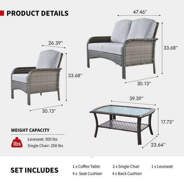 New Hyacinth Gray 4-Piece Wicker Patio Outdoor Conversation Seating Set with a Coffee Table and Gray Cushions