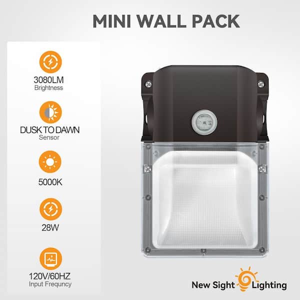 8-Pack 100-Watt Equivalent Bronze Integrated LED Mini Wall Pack Light, 3080Lumens With Dusk To Dawn Photocell 5000K