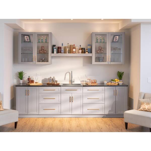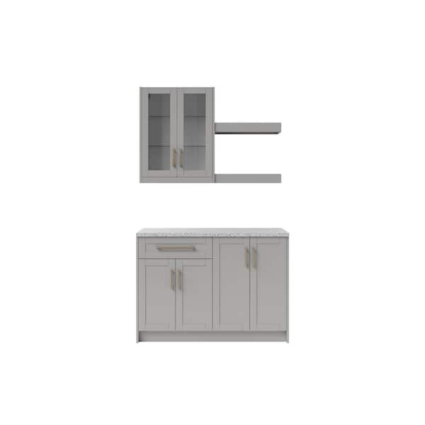 6-Piece Gray Home Bar Cabinet Set with Contemporary Brushed Nickel Handles