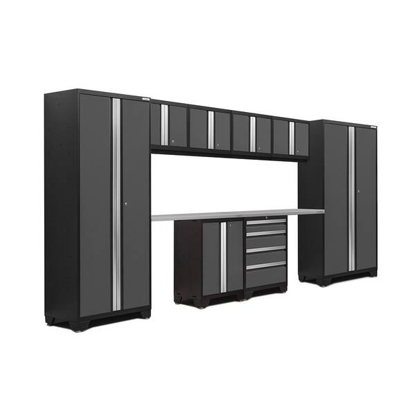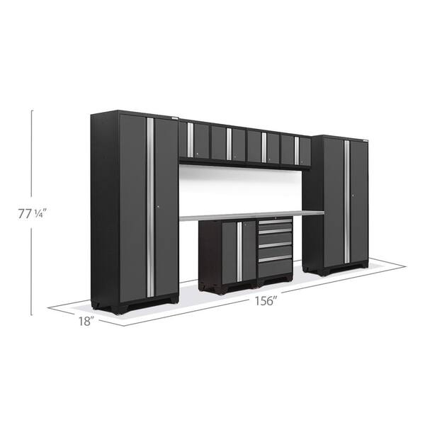 Bold 3 Series 156 in. W x 75.25 in. H x 18 in. D 24-Gauge Welded Stainless Steel Worktop Cabinet Set in Gray (10-Piece)