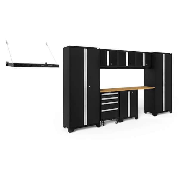 Bold Series 132 in. W x 76.75 in. H x 18 in. D 24-Gauge Steel Garage Cabinet Set in Black (8-Piece)