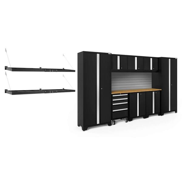 Bold Series 132 in. W x 76.75 in. H x 18 in. D 24-Gauge Steel Garage Cabinet Set in Black (9-Piece)