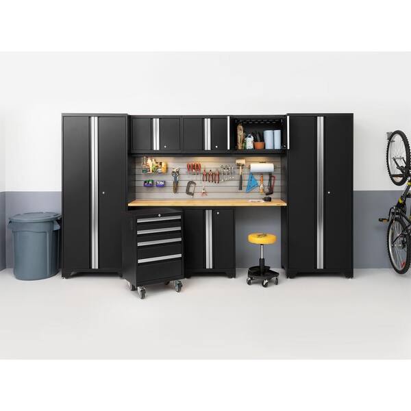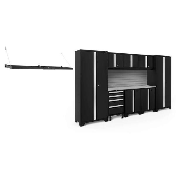 Bold Series 132 in. W x 76.75 in. H x 18 in. D 24-Gauge Steel Garage Cabinet Set in Black (9-Piece)