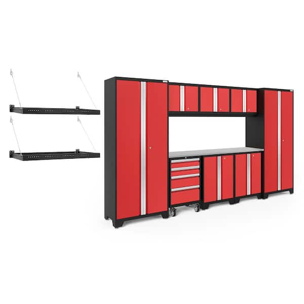 Bold Series 132 in. W x 76.75 in. H x 18 in. D 24-Gauge Steel Garage Cabinet Set in Red (9-Piece)