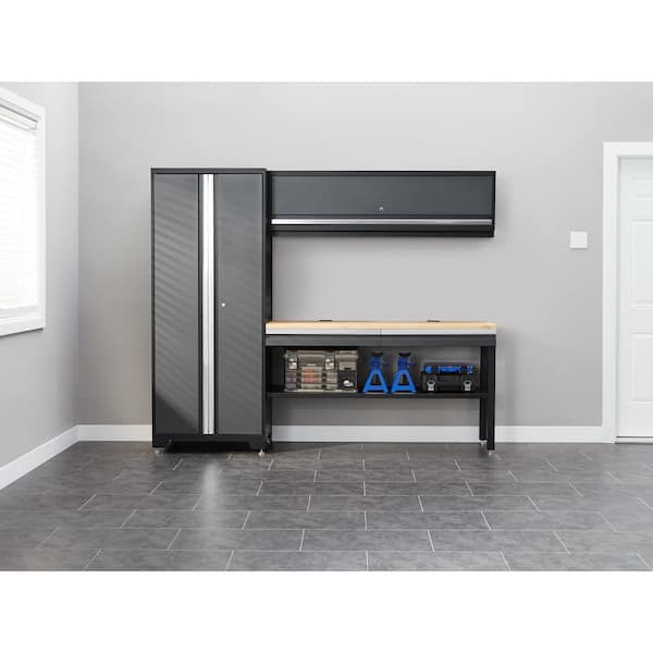 Bold Series 92" W x 76.75" H x 18" D Pre Assembled 24-Gauge Steel 4-Piece Garage Storage System in Gray, Bamboo Worktop