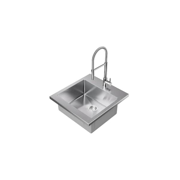 Chrome Stainless Steel 24 in. Single Bowl Drop-In Standard Kitchen Sink with Flex Pull Down Faucet