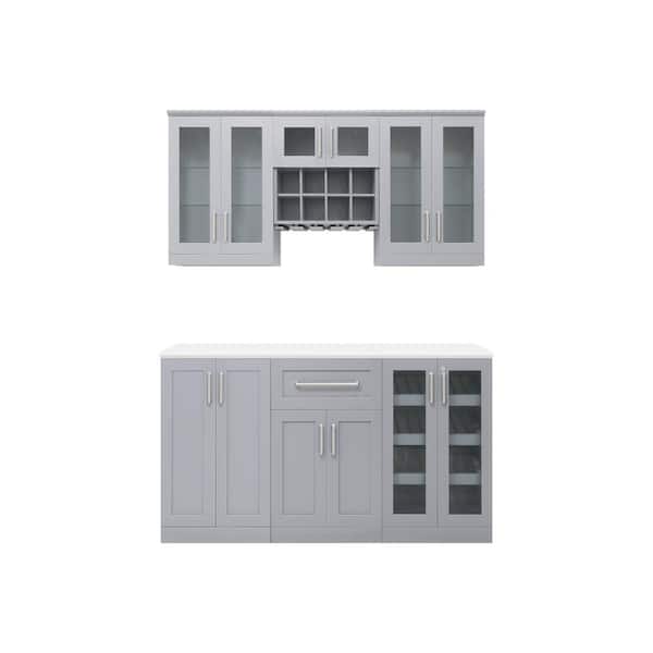 Home Bar 21 in. Gray Cabinet Set (7-Piece)