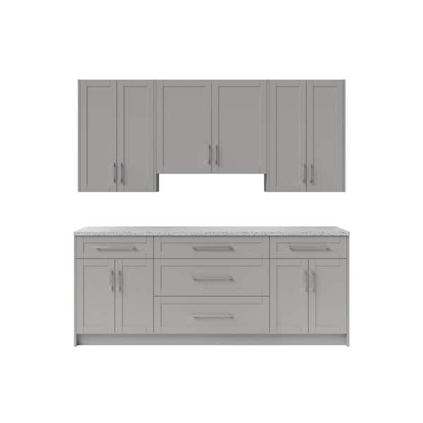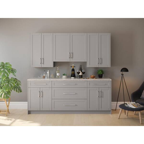 Home Bar 24 in. Gray Cabinet Set with Granite Countertop (7-Piece)