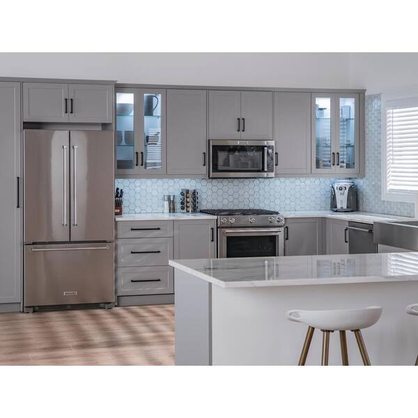 Home Kitchen Gray Particle Board Ext 2-Glass Door Wall Cabinet with Soft Close Door (24 in. W x 13.8 in. D x 36.5 in. H)