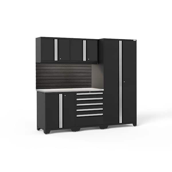 Pro Series 92 in. W x 84.75 in. H x 24 in. D 18-Gauge Steel Garage Cabinet Set in Black (6-Piece)