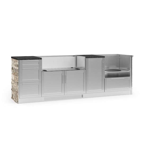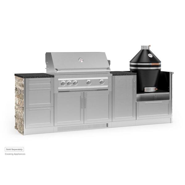Signature Series 107.16 in. x 25.5 in. x 37 in. 8-Piece Outdoor Kitchen Cabinet Set with Kamado and 40 in. Grill Cabinet