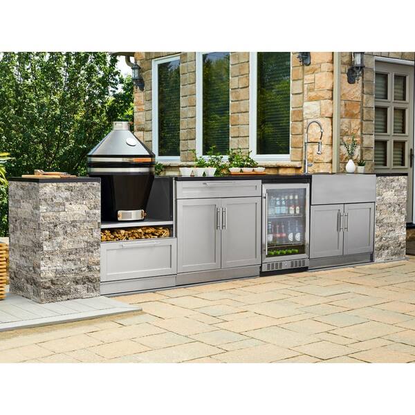Signature Series 125.16 in. x 25.5 in. x 57.5 in. 9-Piece Outdoor Kitchen Cabinet Set with Natural Gas 40 in. Grill
