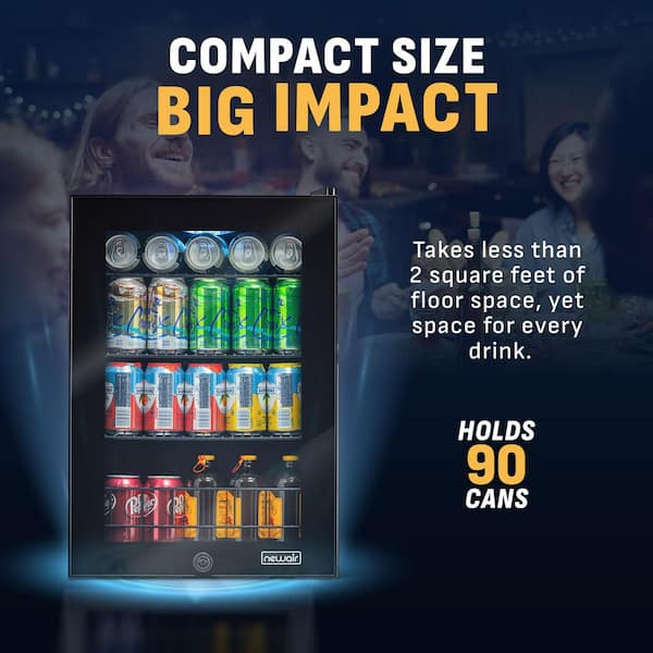 17 in. 90 (12 oz.) Can Cooler Freestanding Beverage Fridge with Adjustable Shelves, Modern Black