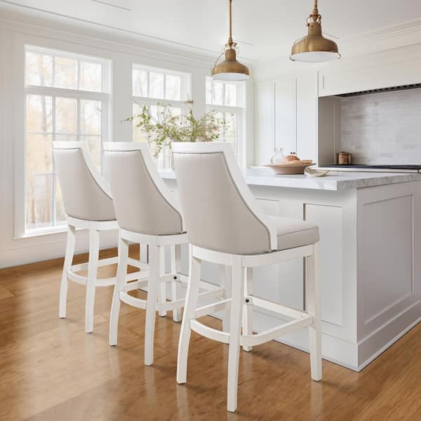 Ellis 31 in. White Tall Back Wood Swivel Bar Stool with Gray Faux Leather Seat, 1-Stool