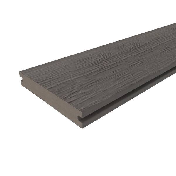 Magellan Plus 0.88 in. x 5.43 in. x 1 ft. Rustic and Wood Grain Argentinian Silver Groove Composite Decking Board Sample