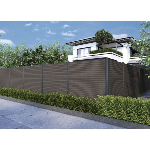 UltraEasy Hybrid Enclosures 6 ft. x 6 ft. Argentinian Silver Gray Composite Horizontal Fence Panel Kit with Gray Frame