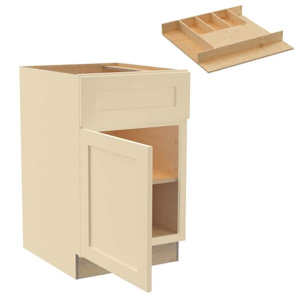 Newport 18 in. W x 24 in. D x 34.5 in. H Assembled Plywood Base Kitchen Cabinet in Blended Cream with Cutlery LH