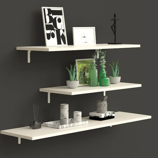 9.8 in. x 23 in. D Laminated Wood Shelf White Decorative Wall Shelf