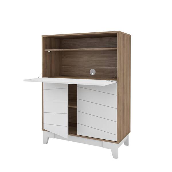 35.8 in. Rectangular Nutmeg and White Secretary Desks with Built-In Storage
